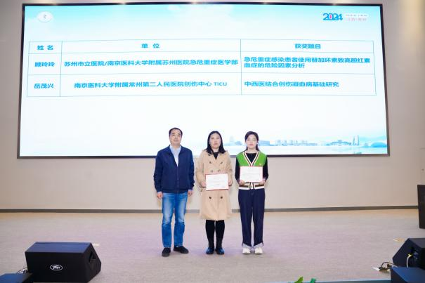 最后,大会主持席与斌教授宣读了论文征集评选结果。本次活动共收到来自全省各医疗机构等委员单位的优秀论文,经过专家评审和大众评选,来自我院的《中西医结合创伤凝血病基础研究》、苏州市立医院的《急危重症感染患者使用替加环素致高胆红素血症的危险因素分析》等16篇优秀论文脱颖而出,会议对对优秀论文进行颁奖仪式。