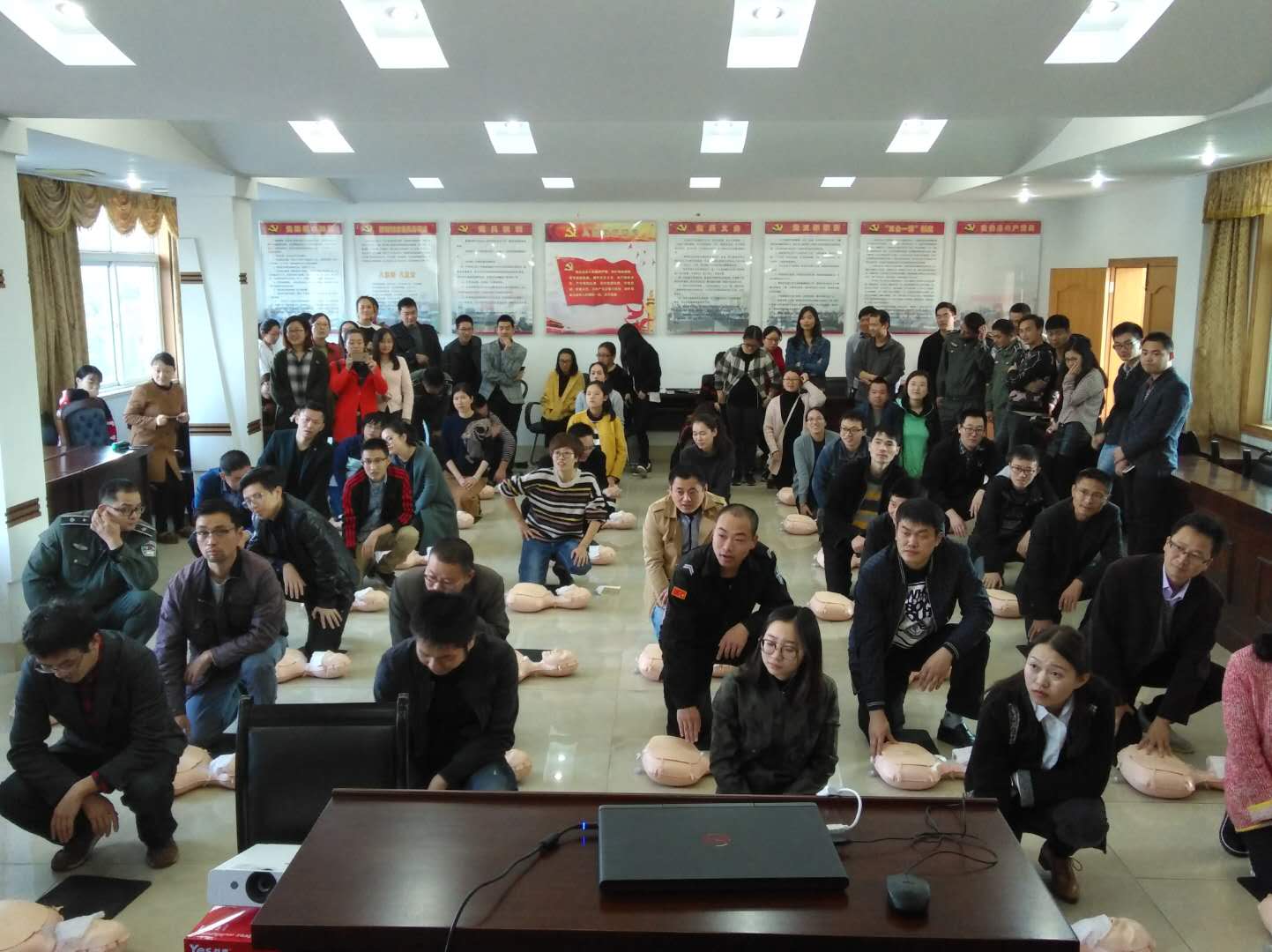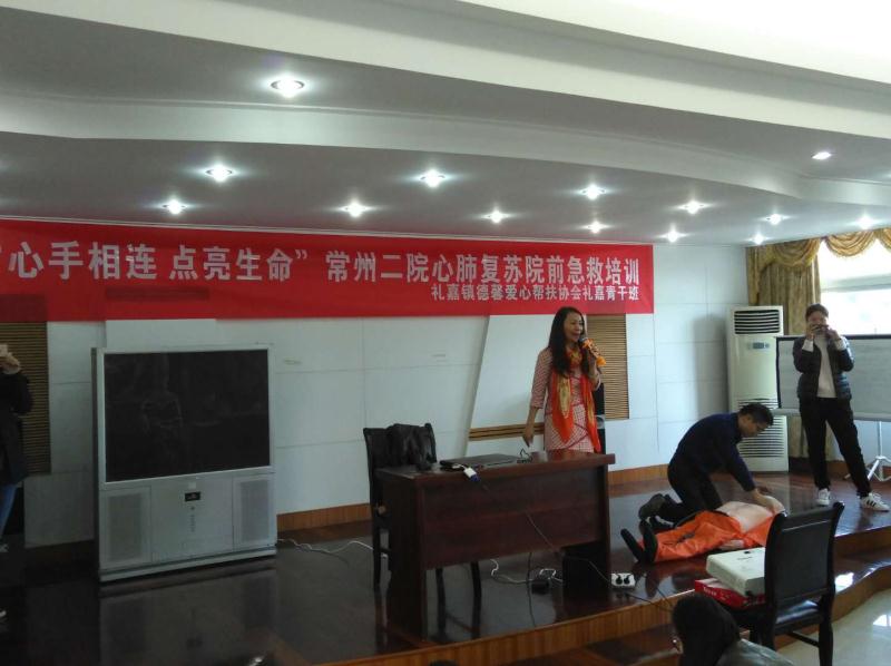 11月6日下午,我院“心手相连,点亮生命”心肺复苏公益培训团队在麻醉科主任邹志清的带领下走进礼嘉镇德馨爱心帮扶协会,为其协会100多名青年干部进行了急救知识培训。