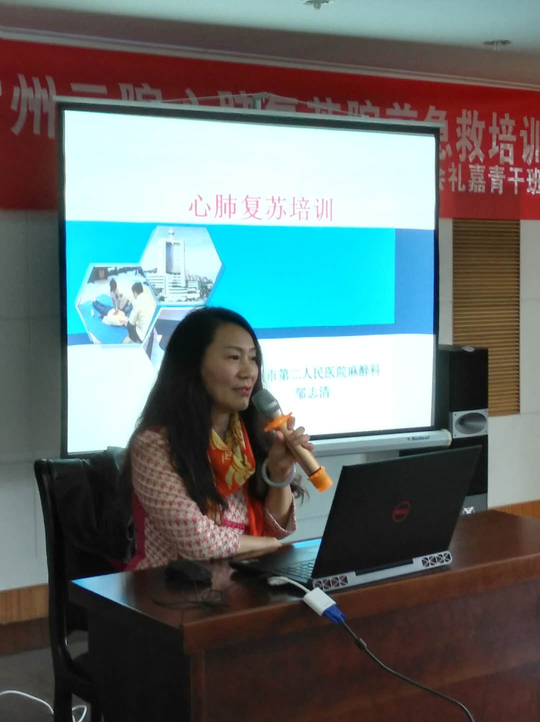 活动现场,邹主任介绍了心肺复苏院前急救培训的意义和重要性,她详细解说了院前心肺复苏的流程和注意事项。