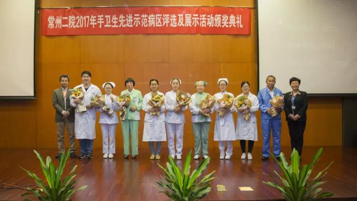 11月3日由工会、感染管理科、医务科、护理部、保卫科共同举办,感染管理科承办的常州二院“2017年手卫生先进示范病区评选及展示活动”颁奖典礼在八楼大会议隆重举行。院长秦锡虎、院党委书记王亚萍、副院长周志武、金东方院区执行副院长朱傲霜以及相关职能科室负责人出席了颁奖典礼。
